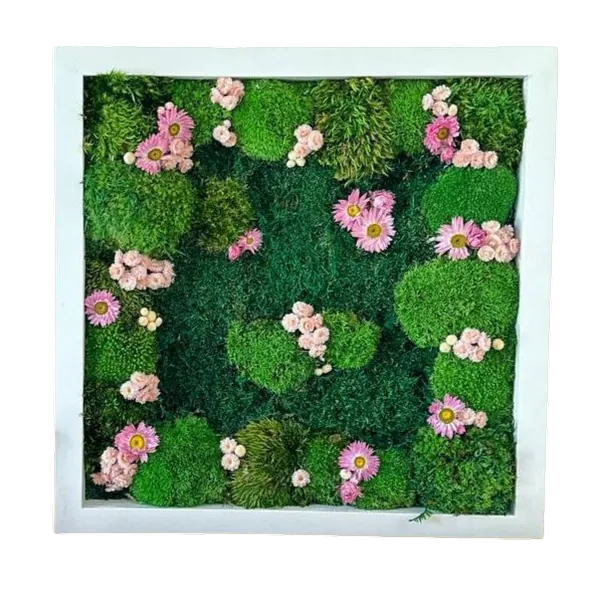 Dlouhá životnost a svěžest: Díky stabilizovaným materiálům si mech a květiny zachovávají živé barvy a estetiku po mnoho let, aniž by uvadaly nebo bledly.