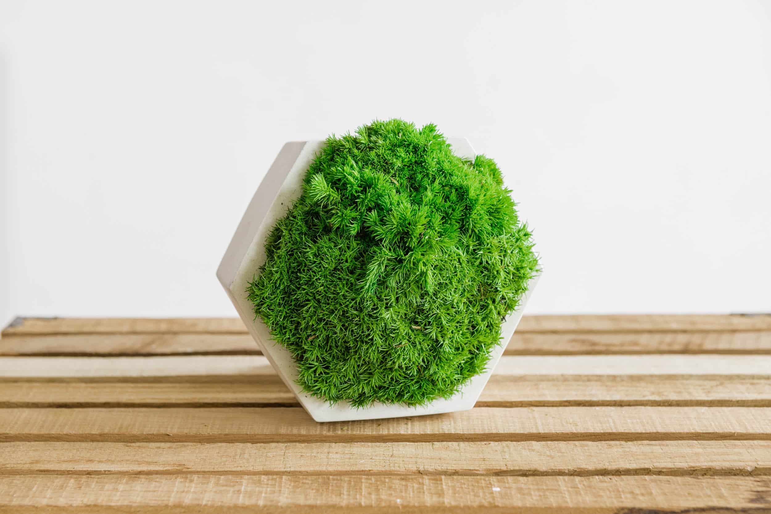 Betonová váza polygon se stabilizovaným kulatým mechem ozdobí každou místnost. Originální mechová dekorace, která zaujme na první pohled. Tato váza s kulatým mechem uklidní pouhým pohledem, dopřejte si kus přírody i u vás doma či v kanceláři. Udělejte radost sobě, nebo někomu blízkému ve formě dárku, který bude obdarovaného těšit několik let. Náplň vázy je plně ekologická, nevyžaduje žádnou péči, osvětlení ani zalévání.