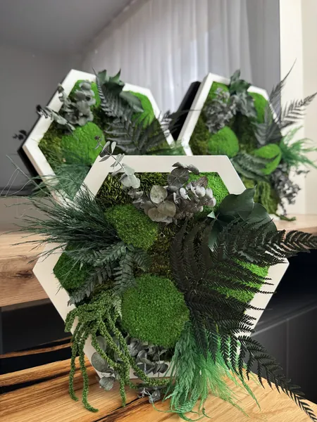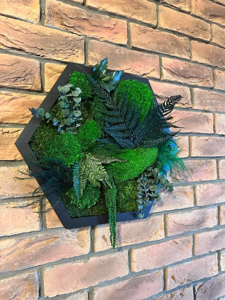 Jedinečné hexagonální obrazy z mechu – Přírodní umění pro váš domov