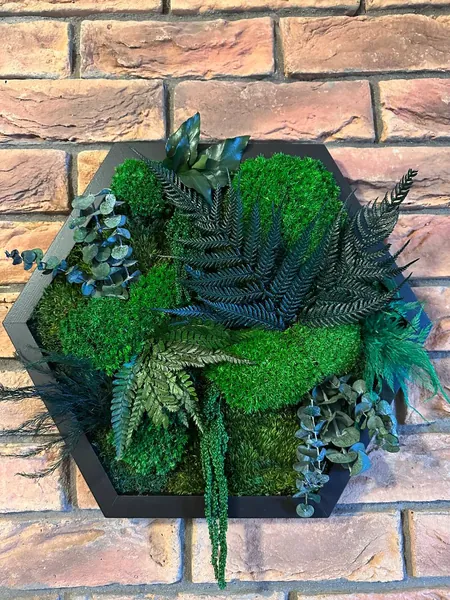 Hexagonální živý obraz z mechu – Rostlinná dekorace
