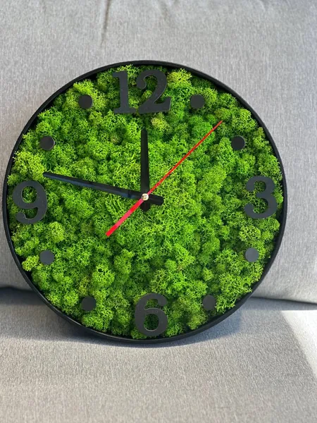 Kulaté Mechové Hodiny s Sobí Mech (Lišejník)