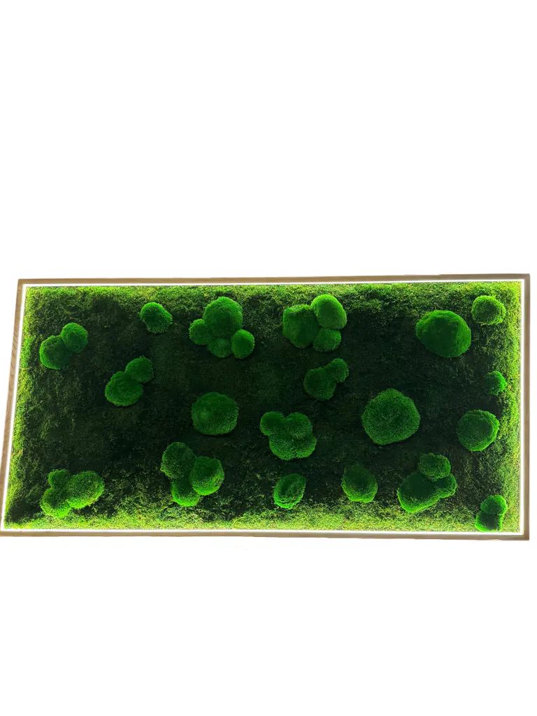 To, co činí naši LED nástěnnou uměleckou práci tak výjimečnou, je integrace moderních LED světel. Mechový obraz jemně a nepřímo osvětluje okolí. LED podsvícení je umístěno tak, aby zvýraznilo kontury kulového mechu a jemné struktury konzervovaných rostlin. Díky použití kvalitních LED lamp vzniká fascinující hra světla a stínu, která přenáší vizualizaci přirozených lesních krajin na vaši mechovou stěnu.