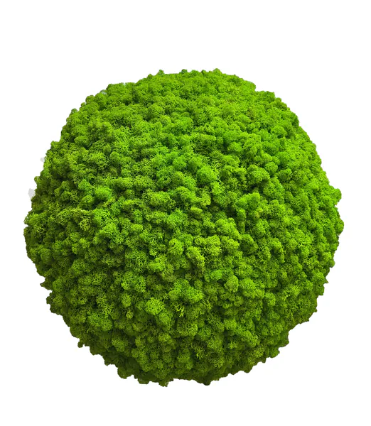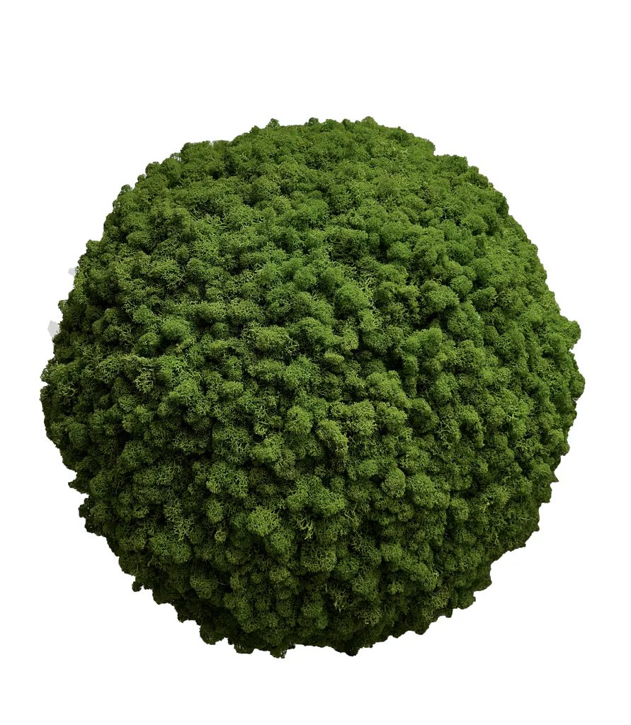 Používáme výhradně pravý islandský mech, který je pečlivě stabilizován. Díky tomu zůstává mechová koule dlouhodobě dekorativní, realistická a nevyžaduje žádnou údržbu. Na rozdíl od umělých výrobků si zachovává autentickou texturu a působí jako skutečný přírodní prvek v interiéru.