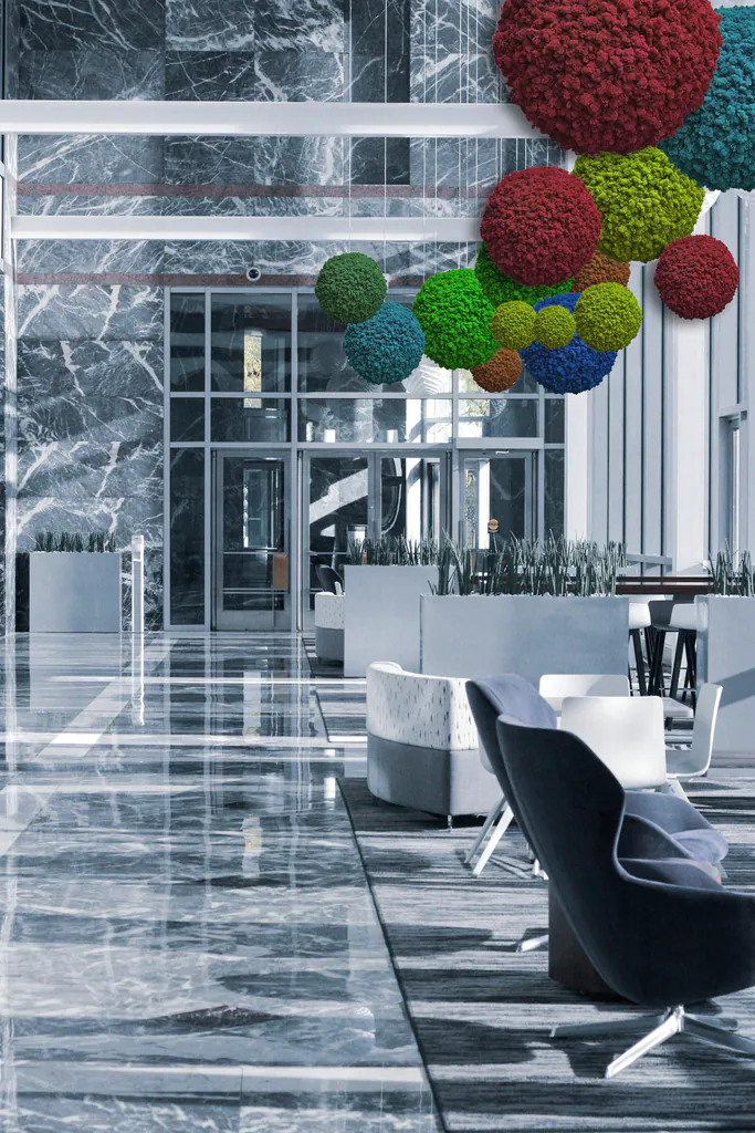 Univerzálnost mechové koule z ní činí ideální dekoraci pro soukromé byty, kanceláře, recepce či jako originální dárek.