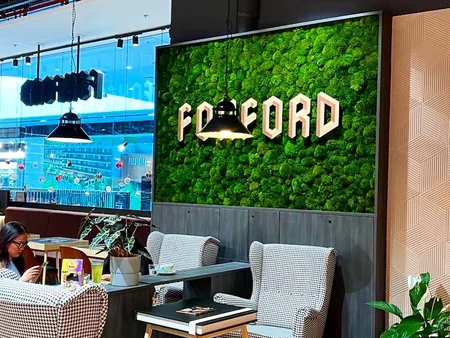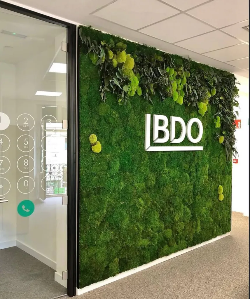 Mechové stěny s logem představují dlouhodobé a ekologické řešení pro firemní prostory. Jsou vyrobeny ze 100 % konzervovaného mechu, který nevyžaduje zalévání, hnojení ani světlo.