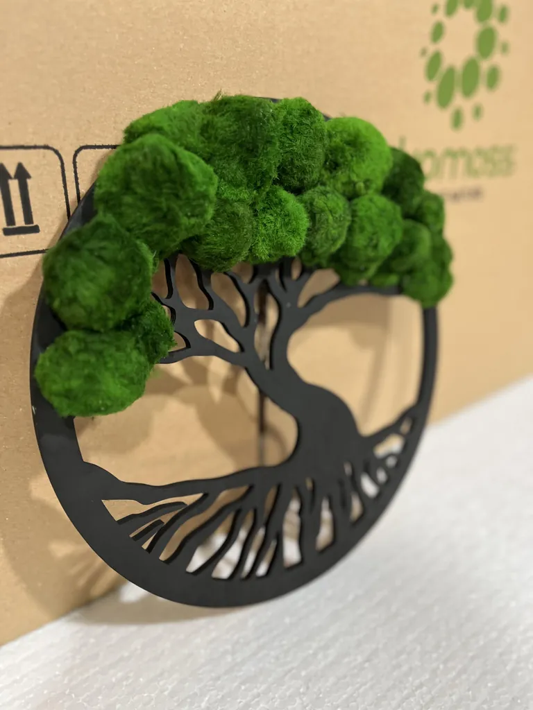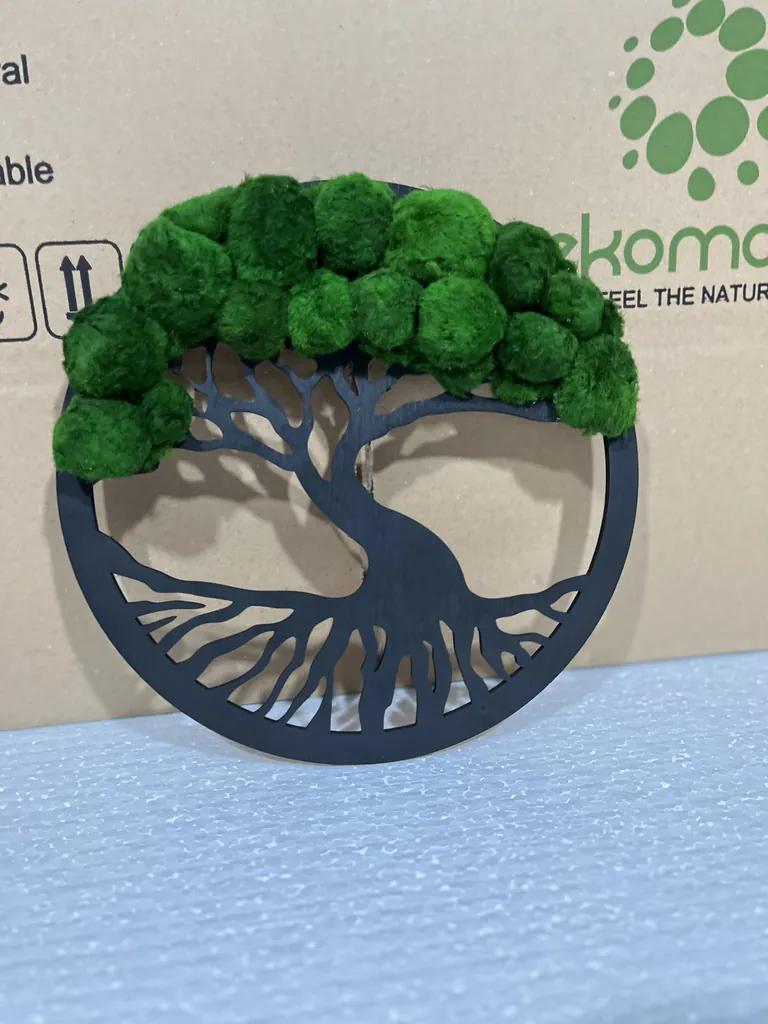 Strom života je silným symbolem růstu, síly a trvalosti. V mnoha kulturách představuje cyklus života a propojení mezi nebem a zemí. Náš „strom z mechu v kruhu s kuličkami Cladophory“ zachycuje tuto symbolickou sílu a přenáší ji přímo na vaši zeď. Strom, zasazený do dřevěného kruhu, připomíná, že život a příroda jsou vždy v dokonalé rovnováze.