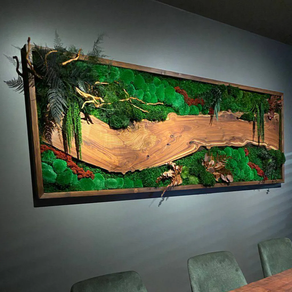 Mechové obrazy s dřevem od Ekomoss jsou dostupné v různých standardních velikostech, aby perfektně zapadly do každého prostoru a vytvořily přírodní atmosféru.
