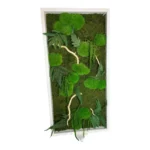 Dekorativní mechový obraz s rostlinami, naplaveným dřevem a osvětlením je k dispozici v různých velikostech a stylech a lze jej snadno zavěsit na stěnu jako dekorativní prvek. Je to skvělý doplněk do každého interiéru, ať už moderního nebo klasického.