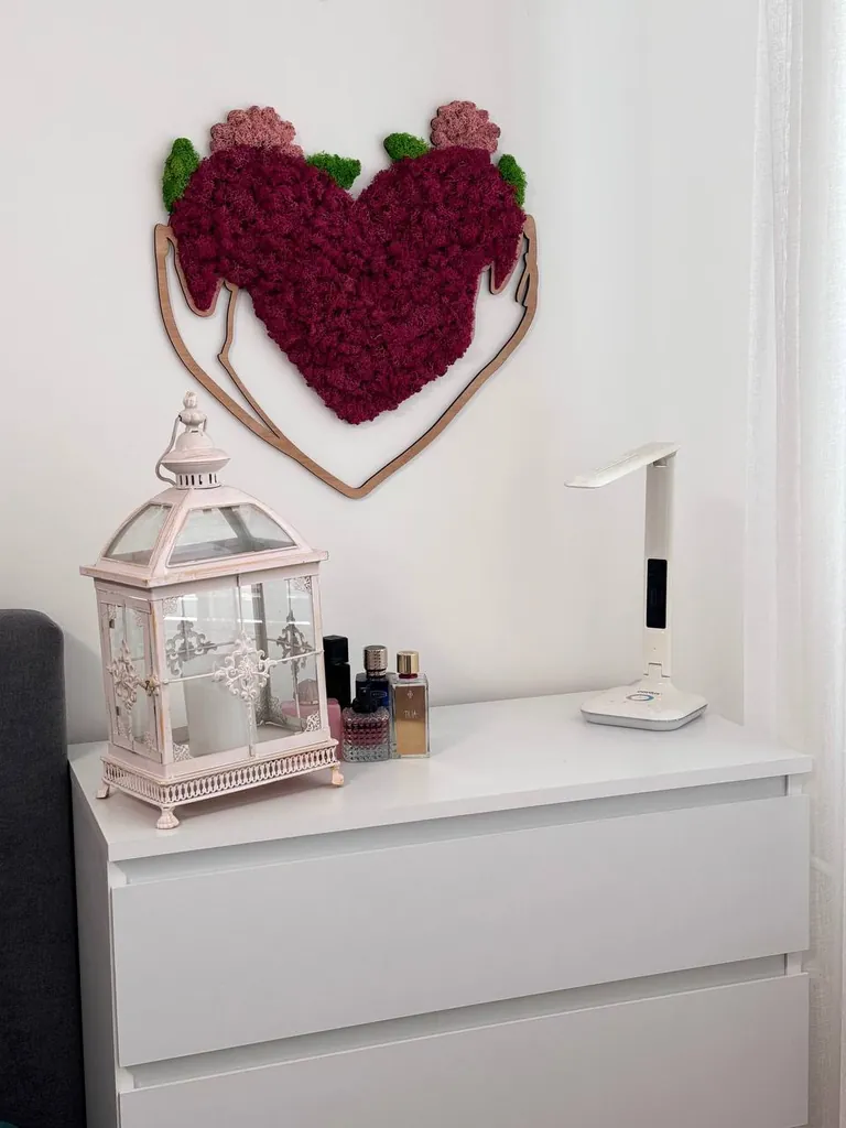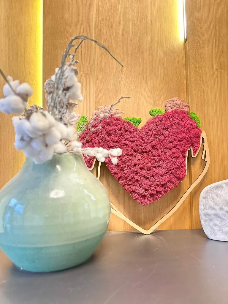 Srdce je ideální pro vytvoření stylových akcentů v obývacím pokoji nebo kanceláři. Přináší přirozený šarm konzervovaného mechu do vašeho prostoru. Mech je pečlivě vybraný a konzervovaný, takže zachovává krásu a svěžest přírodních rostlin bez potřeby vody či péče.