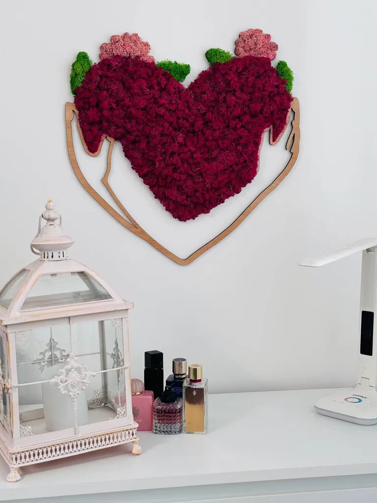 Díky velikostem 50×50 cm nebo 60×60 cm se mechové srdce hodí do různých prostor. Barevné varianty mechu poskytují flexibilitu při dekoraci, takže jej lze snadno začlenit do jakéhokoli interiéru. Červený mech je ideální pro romantické příležitosti, svatby nebo jako kreativní dárek pro blízké.
