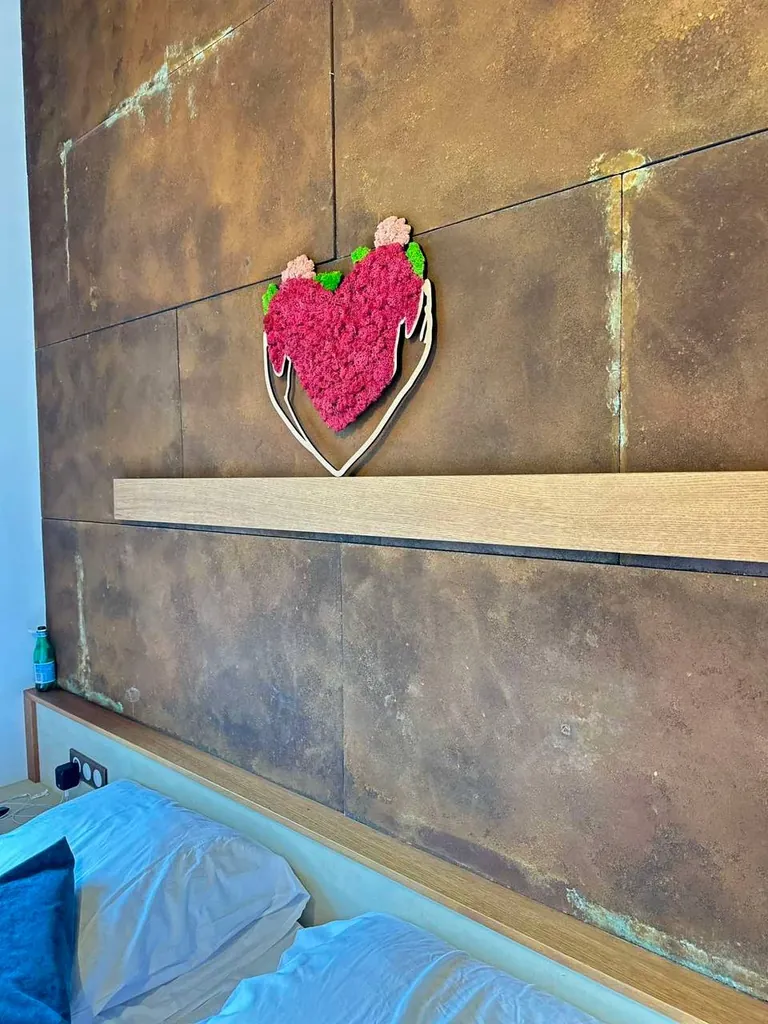 Základ srdce tvoří kvalitní dřevovláknitá deska z dýhovaného dřeva, která mechu poskytuje stabilní strukturu. Design srdce připomíná dvě ruce, které se objímají, což symbolizuje lásku a propojení. Tento jedinečný design byl speciálně vytvořen naším talentovaným designérem pro Ekomoss a najdete ho pouze u nás.