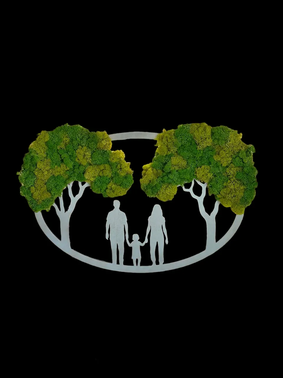 S mechovým obrazem – rodokmenem rodiny s osvětlením přinesete do svého domova jedinečné spojení umění, přírody a rodiny. Toto umělecké dílo není jen vizuální potěšení, ale také symbol lásky a soudržnosti, která ve vaší rodině kvete.