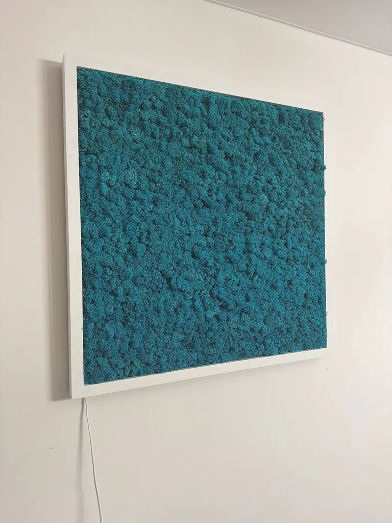 Naše obrazy z islandského mechu s LED osvětlením jsou k dispozici v různých barvách a velikostech. Podle stylu interiéru si můžete vybrat mezi přírodními odstíny zelené nebo moderními barevnými akcenty, jako je bílá, šedá nebo fialová. LED osvětlení lze také přizpůsobit – například teplá bílá nebo neutrální bílá.