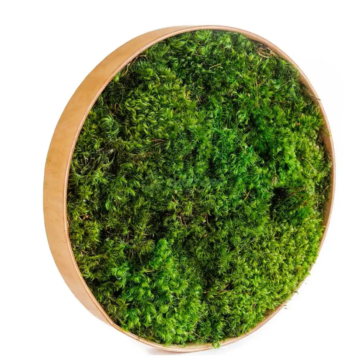 Kulatý dřevěný rám: Srdcem sady je kulatý rám, který vašemu obrazu z mechu dodává jeho jedinečný tvar. Rám má tloušťku 4,5 mm, výška okraje se pohybuje mezi 4–5 cm uvnitř a až 6 cm zvenčí, v závislosti na výrobní šarži. Je vyroben z kvalitního, odolného dřeva a má předem namontované závěsy a hmoždinky pro snadnou a bezpečnou montáž.