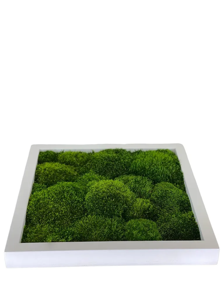 Srdce sady – Provence mech: Tento unikátní mech je pečlivě sklizen, stabilizován a zbarven tak, aby vynikly ty nejkrásnější odstíny přirozené mechové zeleně. Zachovává si svou měkkou strukturu, pružnost a sytou barvu po mnoho let. Delší „listy“ nebo stonky dodávají hotovému obrazu výjimečnou hloubku a pohyb, který se výrazně odlišuje od kompaktních struktur jiných mechových druhů.