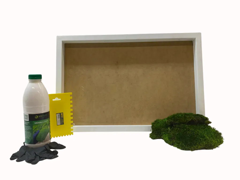 Speciální lepidlo pro nejlepší výsledky: Speciálně vyvinuté lepidlo pro stabilizovaný mech zajišťuje pevné a trvalé spojení. Lepidlo tuhne 15–30 minut a obraz lze zavěsit již 1–2 hodiny po dokončení. Plné vytvrzení probíhá do 24 hodin.