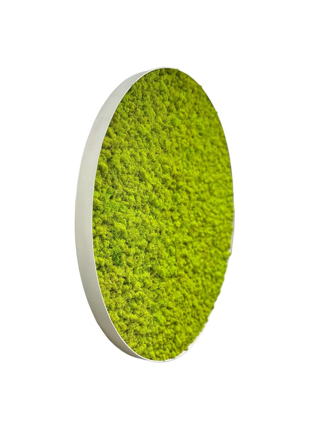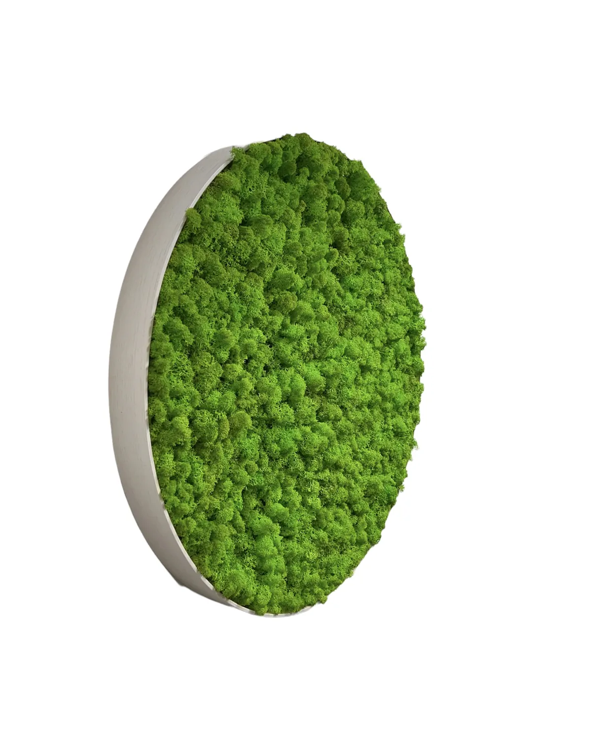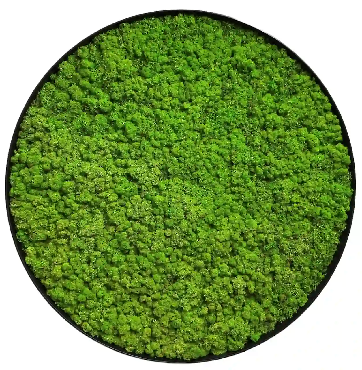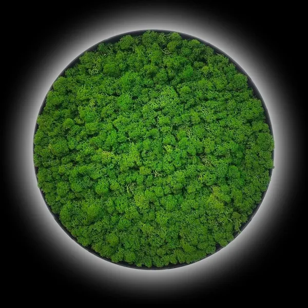Kulaté obrazy z mechu poskytují jedinečnou estetiku, která se odlišuje od běžných geometrických forem. Přerušují rovné linie místnosti, vytvářejí harmonický kontrast a působí jako měkký, organický akcent. Ať už jako ústřední prvek v obývacím pokoji, nebo jako dekorativní bod v ložnici – kulatý tvar zajišťuje vždy vyvážený a vizuálně přitažlivý výsledek.