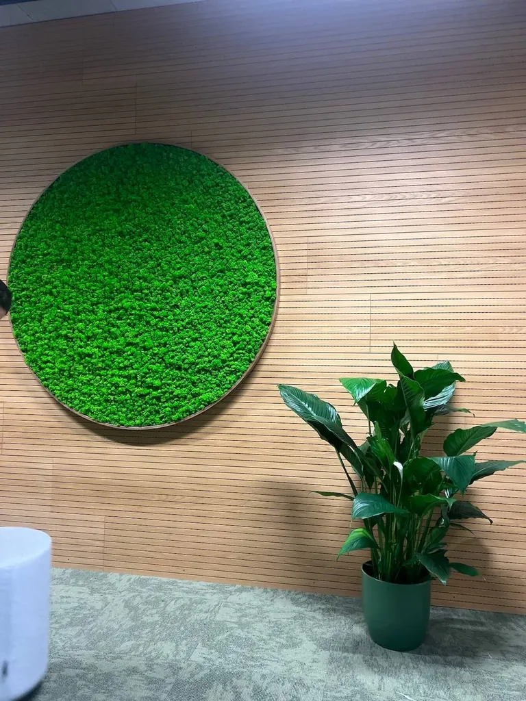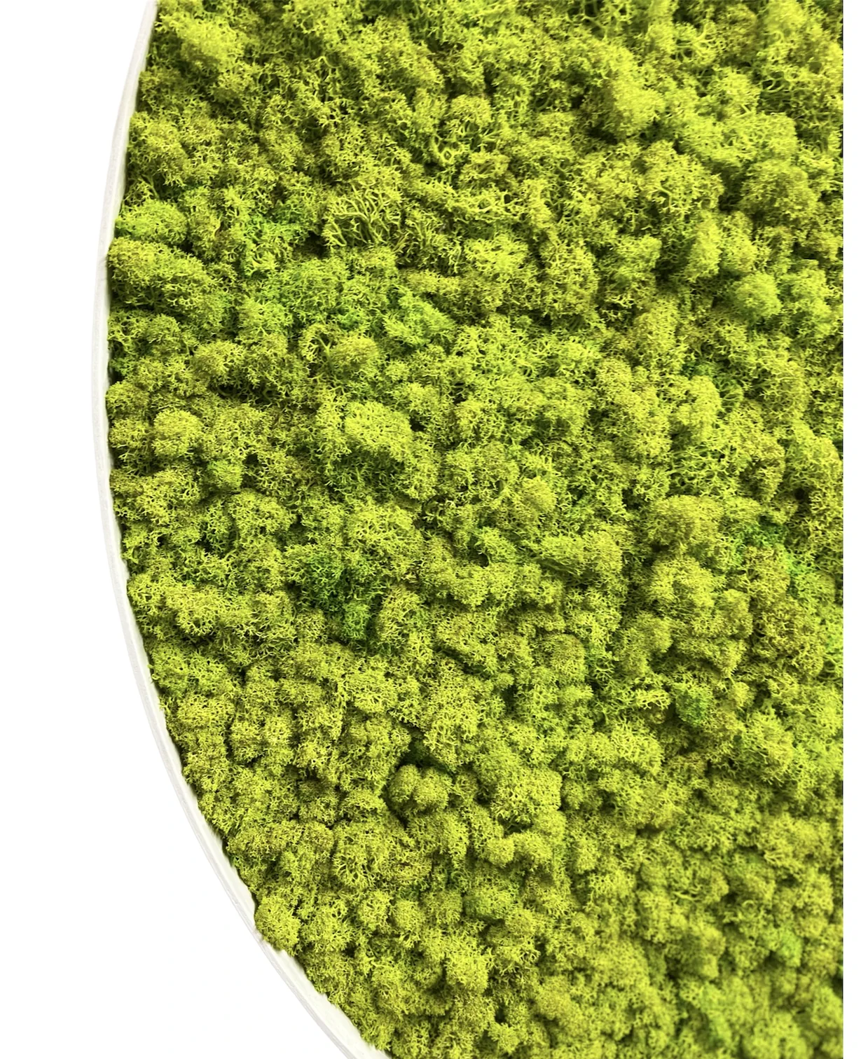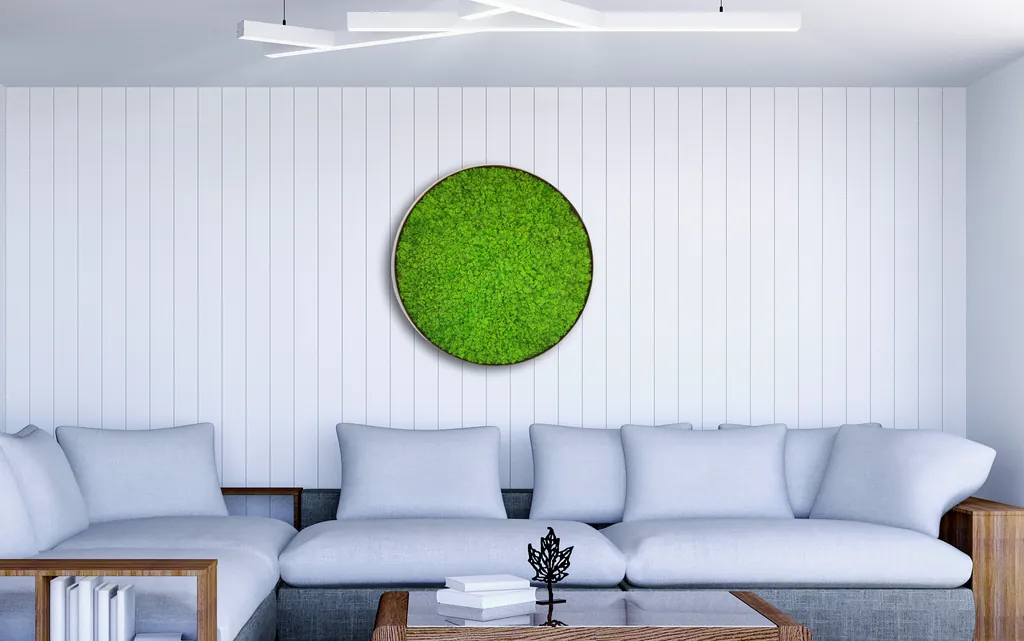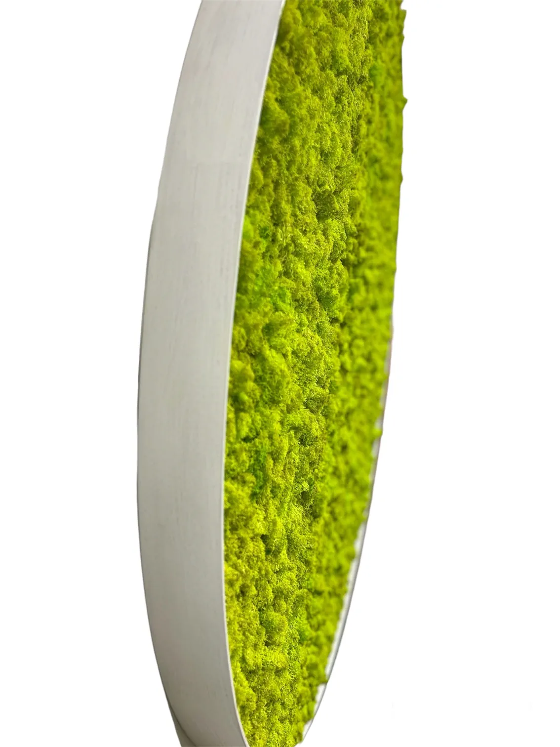 Kulaté obrazy z mechu poskytují jedinečnou estetiku, která se odlišuje od běžných geometrických forem. Přerušují rovné linie místnosti, vytvářejí harmonický kontrast a působí jako měkký, organický akcent. Ať už jako ústřední prvek v obývacím pokoji, nebo jako dekorativní bod v ložnici – kulatý tvar zajišťuje vždy vyvážený a vizuálně přitažlivý výsledek.